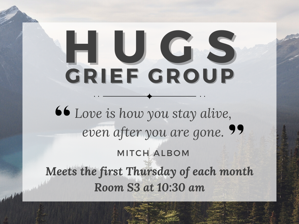 Grief is easier to bear with support. The HUGS Grief Support Group meets on the first Thursday of each month at 10:30 AM, offering a safe space to share, listen, and heal. HUGS Grief Group meets in Room S3 across from the choir room.